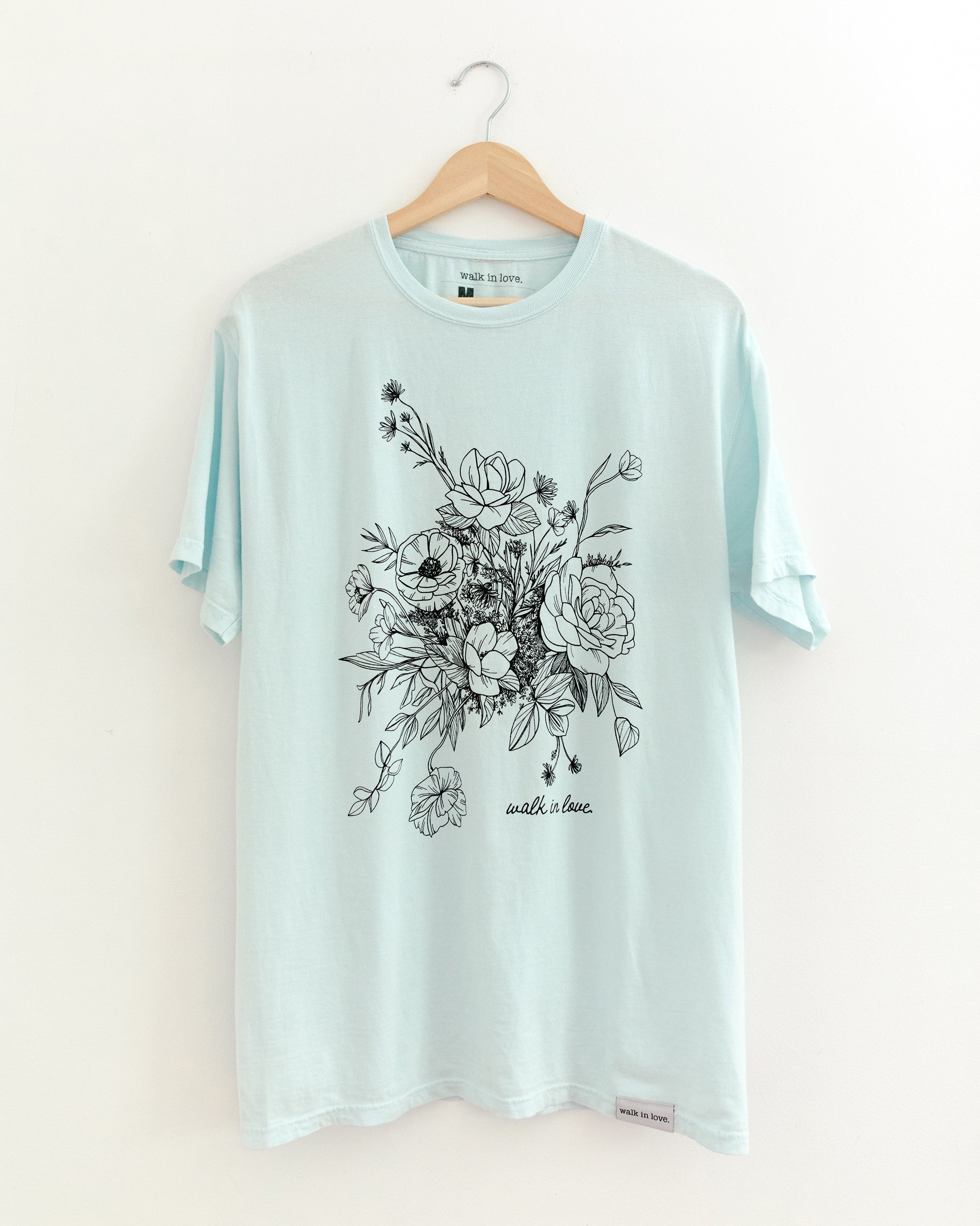 walk in love. Floral Dusty Blue Vintage Washed Tee