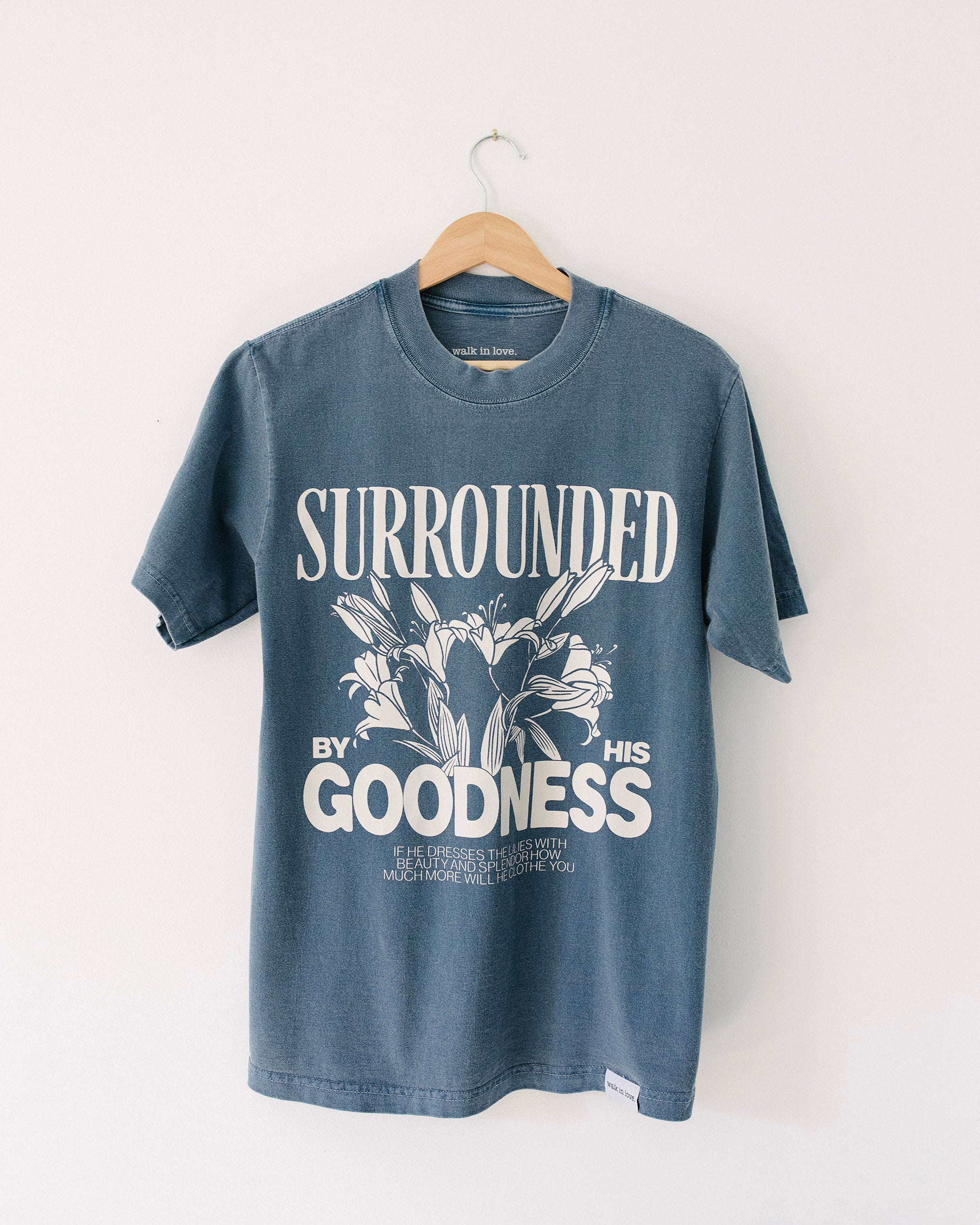 Surrounded by His Goodness Heavyweight Dusty Blue Tee