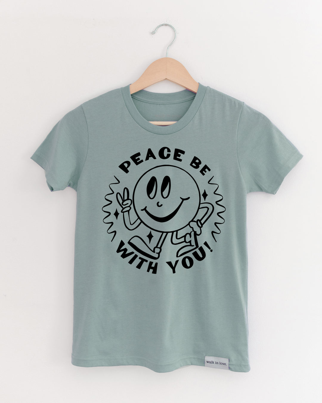 Peace Be With You Dusty Blue Youth Tee